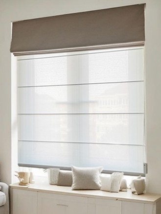 Римские шторы с электроприводом безопасны для детей и домашних животных, так как отсутствуют свисающие шнуры и цепочки.